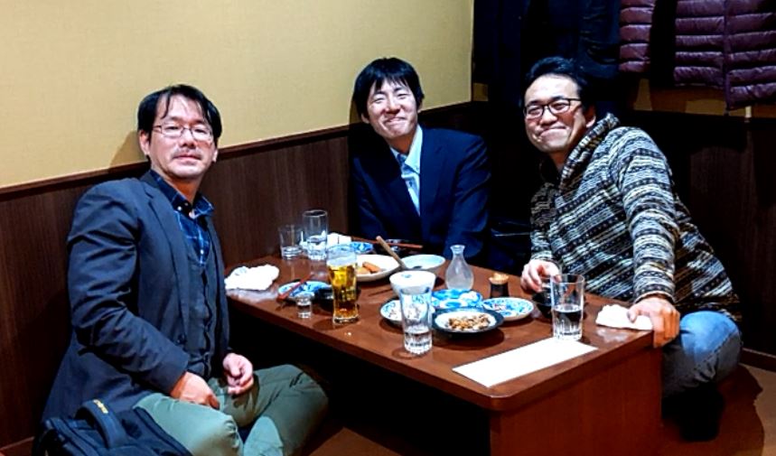 2019年度定例会(左京区の「味弘」さんにて。左から、常見・安藤・後藤)
