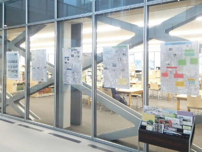 図書館入り口のすぐ横で展示させて頂きました。