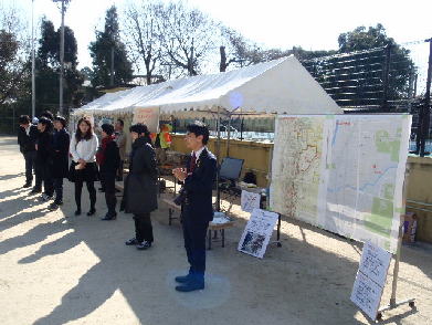 本ワークショップは「平成28年度月輪学区(京都市東山区)総合防災訓練」の出展ブースの一つとして実施させて頂きました。地震や火災、台風などの災害から身を守るためには、自分自身の住む町の特徴を把握しておき、災害時対応の意識をあらかじめ高めておくが大事です。本ワークショップでは、防災・減災に先立つ基礎情報として、地域の今と昔を住民の方々に振り返っていただくため、現代の地図と古地図を比較するワークショップを開催しました。
