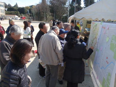 開始直後から人だかり。地図には地域の情報が次々と貼られていきます。