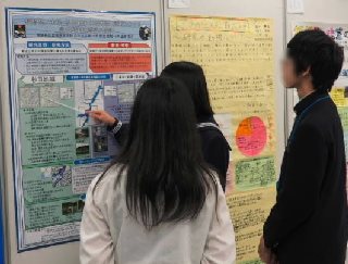 ※発表当日の様子。大学の先生や他校の高校生に研究成果を解説中。